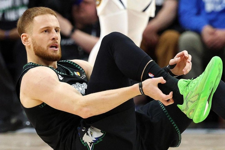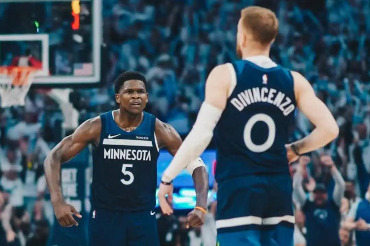 开场仅1分多钟,常规赛82场全勤的迪文琴佐在一次投三分后的无对抗蹬地时右小腿剧烈抖动,痛苦倒地,随即被搀扶离场。赛后ESPN名记Shams跟进报道,伤情检测为右脚跟腱撕裂,赛季报销。跟腱撕裂这类伤病在NBA并不算罕见,塔图姆、杜兰特等球星都经历过,但每一次出现都意味着球队轮换的致命塌陷。考虑到迪温琴佐常规赛场均命中2.9记三分,三分命中率37.9%,是森林狼外线最稳定的火枪手和防守尖兵,他的赛季报销对于球队攻防两端无疑是巨大打击。